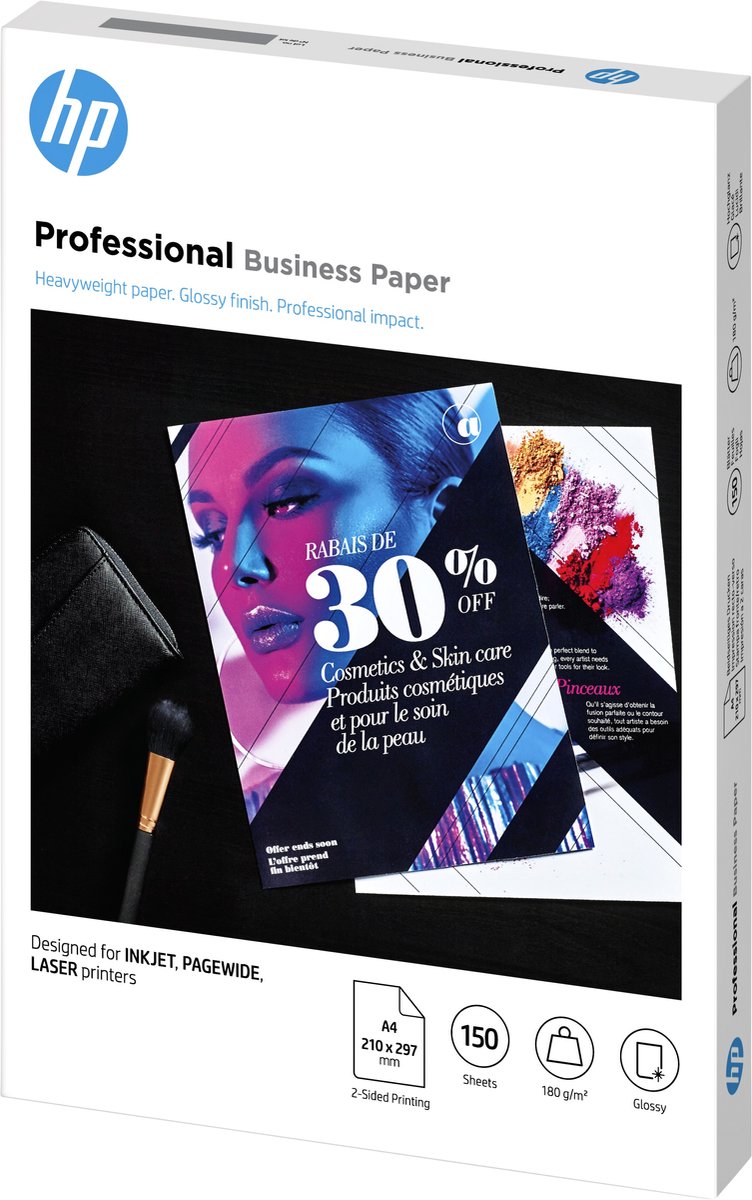 Als u op zoek bent naar afdrukken met een professionele uitstraling, dan is ons HP Professional Business Paper de perfecte keuze. Dit glanzende papier is FSC-gecertificeerd en biedt heldere, zwarte tekst en scherpe kleurenafbeeldingen op brochures, flyers en al uw andere marketingmaterialen.
