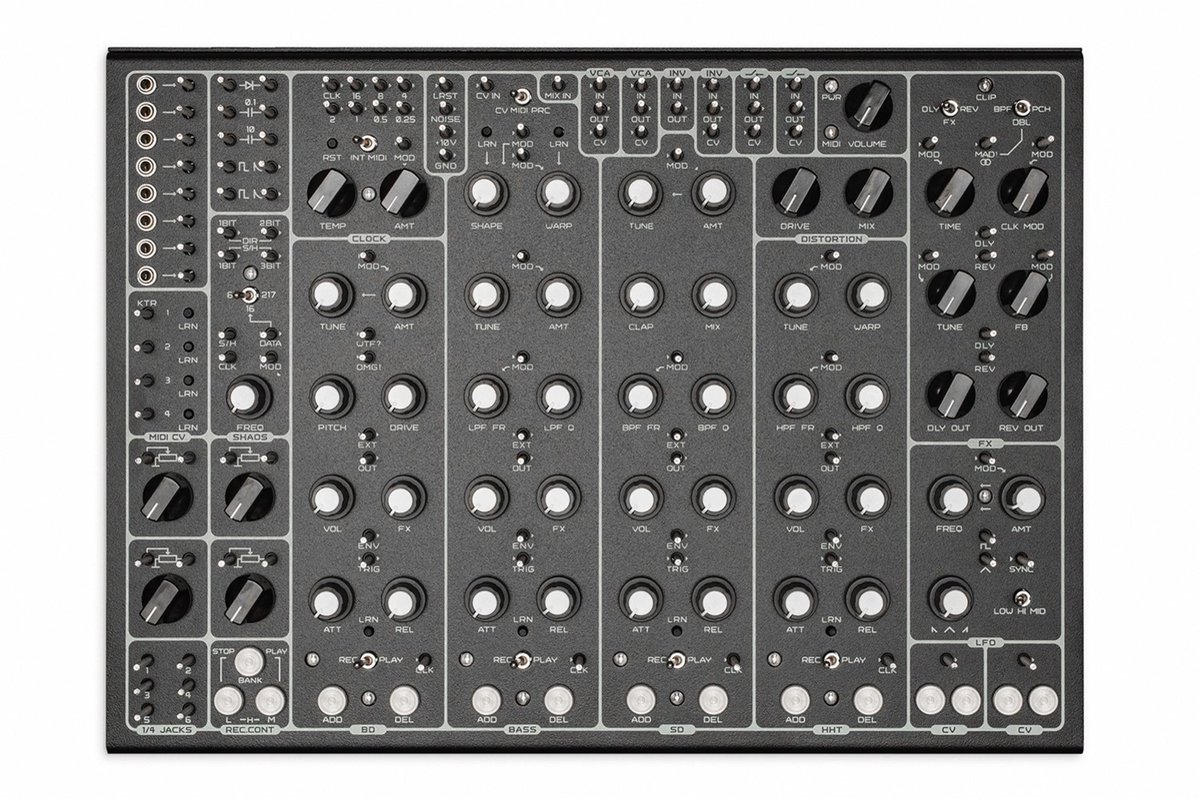 analoge Drum synthesizer. semi-modulair. meer dan 100 patchpunten. 4 voices/tracks (basdrum, bas, snaredrum, hi-hat). 4 loop recorders. Tempo generator met delers. Vertraging & Reverb (DSP-gebaseerd). Analoge vervorming. LFO met variabele golfvorm. Ruisgenerator. 2 poorten. 2 VCA's. 2 inverters. Randomizer. MIDI-besturing. 6 bi-directionele 6,3 mm jack-aansluitingen. 8 bidirectionele 3,5 mm jack-aansluitingen. alle aansluitcon... lees meer over dit product