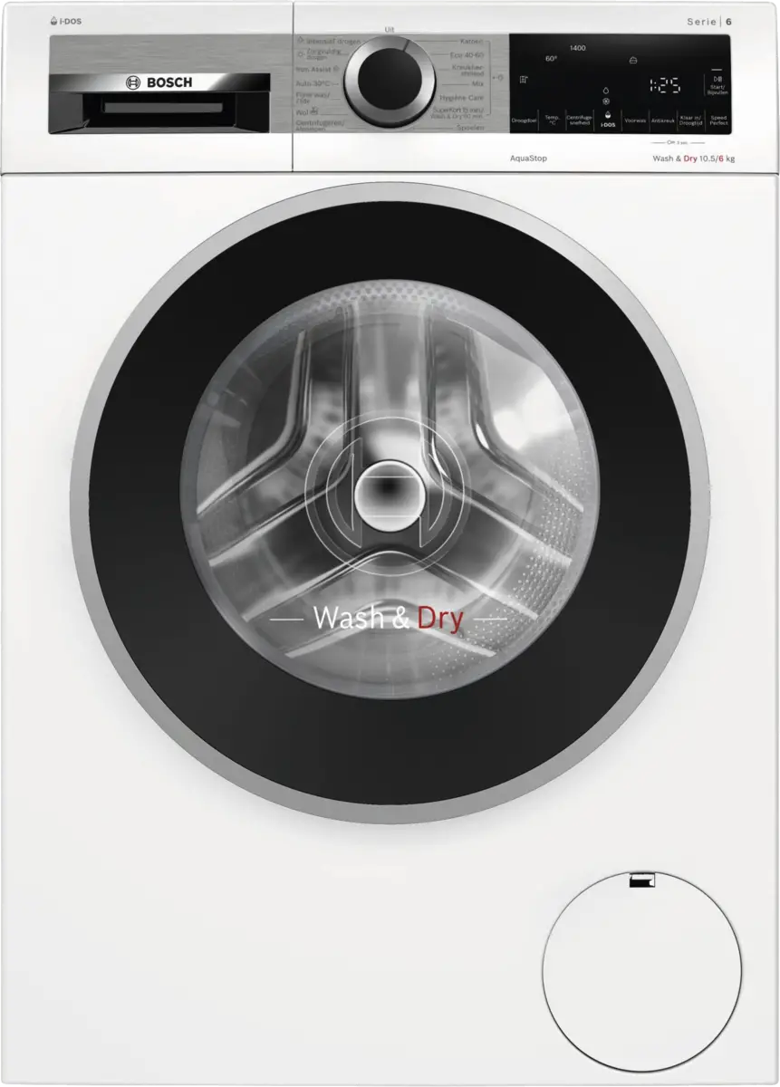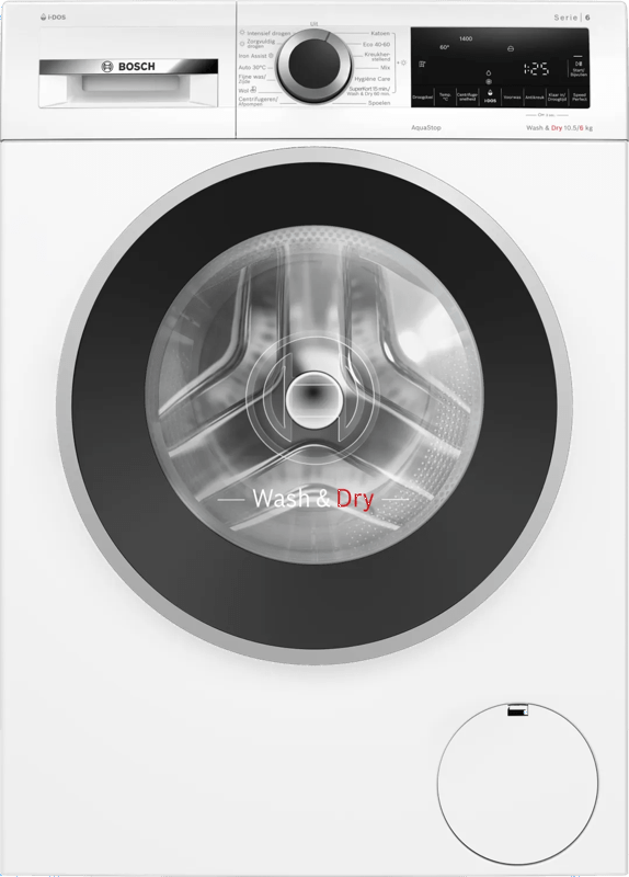 Ontdek de Serie 6 Was-droogcombinatie, de ultieme alles-in-één oplossing voor je wasbehoeften. Met een royale capaciteit van 10.5 kg om te wassen en 6 kg om te drogen, biedt deze was-droogcombinatie alles wat je nodig hebt voor efficiënt en gemakkelijk wassen en drogen in één apparaat. Wash & Dry 10,5 kg / 6 kg Geen ruimte in huis voor een droger? Geen probleem. Bosch was-droogcombinaties met AutoDry wassen én drogen je was in... lees meer over dit product