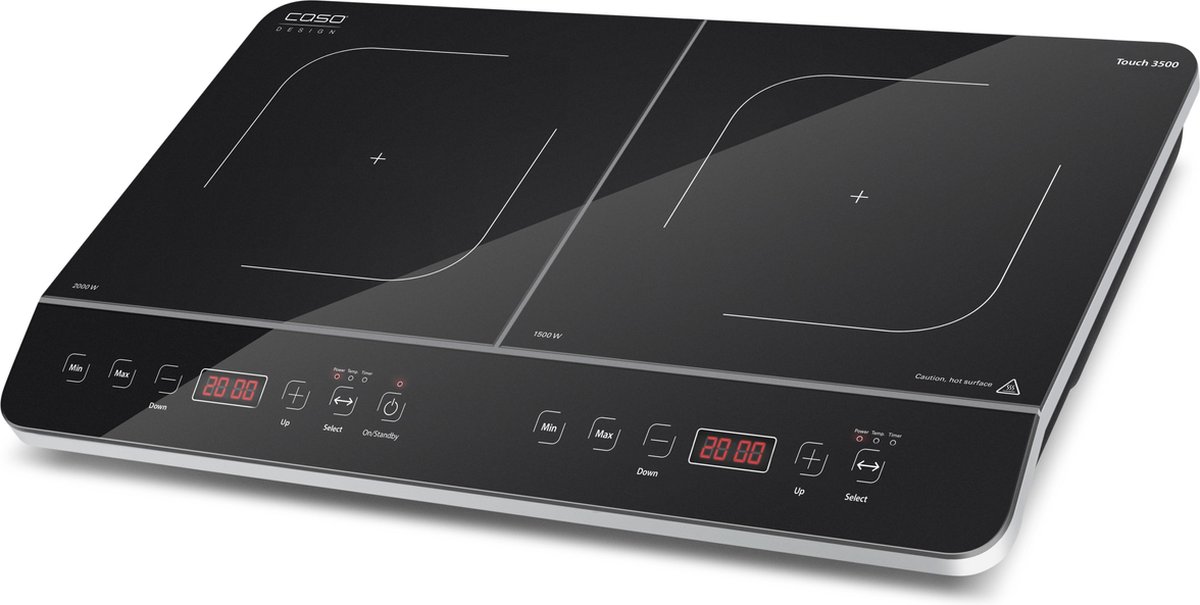 De CASO Touch 3500 is een compacte en krachtige mobiele dubbele inductiekookplaat die koken tot een eenvoudig, snel en veilig proces maakt. Met een totaal vermogen van 3500 watt verdeeld over twee onafhankelijk regelbare kookzones, biedt deze inductiekookplaat flexibiliteit voor diverse kookwensen. Of het nu gaat om snel koken, sudderen of warmhouden, dankzij 10 temperatuurniveaus (60-240°C) en 6 vermogensstanden per zone bereik je altijd het perfecte kookresultaat.