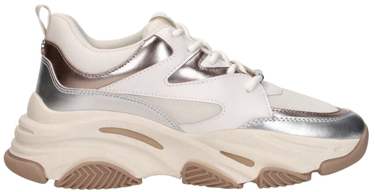 Voeg een vleugje sprankeling toe aan je lente- en zomergarderobe met deze PROGRESSIVE sneakers van Steve Madden. Deze lage sneakers met ronde neus en chunky zool zijn perfect voor een dagje shoppen of een ontspannen wandeling in het park. De binnenkant van textiel zorgt voor ademend comfort, terwijl de rubberen zool je elke stap stevig laat zetten. Dankzij het uitneembare voetbed geniet je van extra gemak. Combineer ze met een luchtige zomerjurk of een stijlvolle short voor een moeiteloze, trendy look. De vetersluiting maakt het geheel af en zorgt voor een perfecte pasvorm.