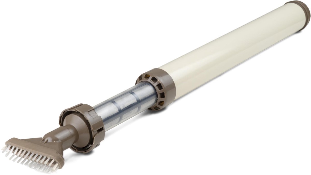 De Kokido Mano Vac is een compacte handstofzuiger die functioneert op waterdruk, ideaal voor het lichte onderhoud van kleine opzetzwembaden en spa's tot 10 m3. Dit systeem combineert gebruiksgemak met de flexibiliteit van een draadloze reiniger, perfect voor het verwijderen van grover vuil zoals bladeren en zand.