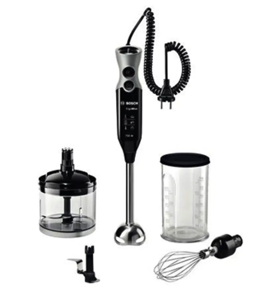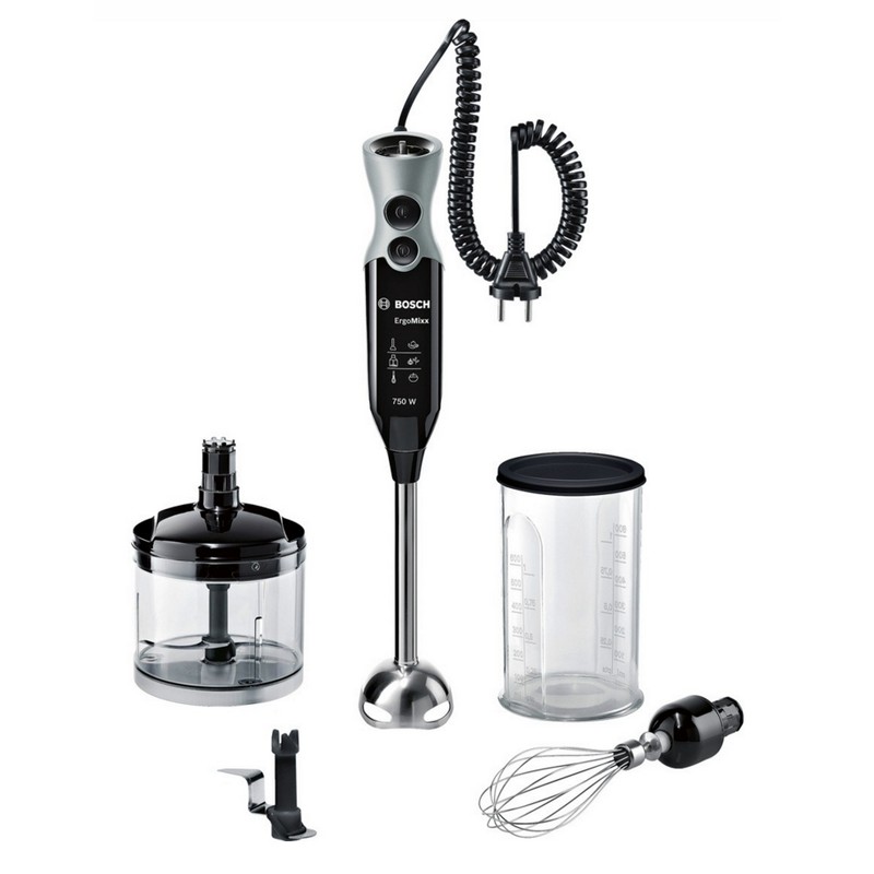 Deze Bosch MSM67170 ErgoMixx staafmixer heeft een vermogen van 750 watt en komt met 12 snelheidsinstellingen. De staafmixer heeft een ergonomische grip en is licht van gewicht. De Bosch MSM67170 ErgoMixx staafmixer is voorzien van een 4-bladenmes. Samen met de hakmolen en maatbeker wordt deze Bosch staafmixer dan ook geschikt voor het bereiden van sauzen, soepen en kleine maaltijden. De meegeleverde hakmolen is geschikt voor het vermalen van noten, groenten en kaas. Met de hakmolen kun je kort harde ingredienten malen als noten of zachtere ingredienten met een wat langere stand fijn krijgen.