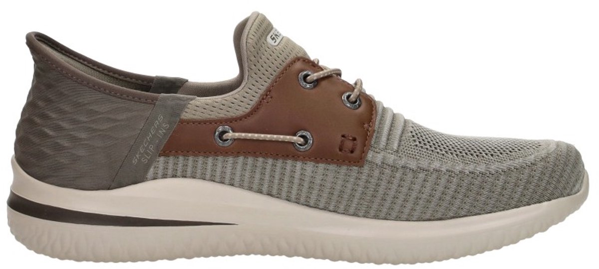 Voordelen Skechers Slip-Ins Delson 3.0 Roth voor herenDe heren instappers van Skechers, model Delson 3.0 Roth, zijn een fijne toevoeging aan je garderobe. Deze bruine schoenen zijn gemaakt van textiel en hebben een moderne, sportieve uitstraling die gemakkelijk te combineren is. Door de flexibele materialen en de slimme instap zijn ze ideaal voor momenten waarop je snel en comfortabel de deur uit wilt. Het mooie aan deze schoenen is hoe ze de voeten omarmen, waardoor de druk goed wordt verdeeld en je de hele dag comfortabel loopt, zonder knelling of ongemak.