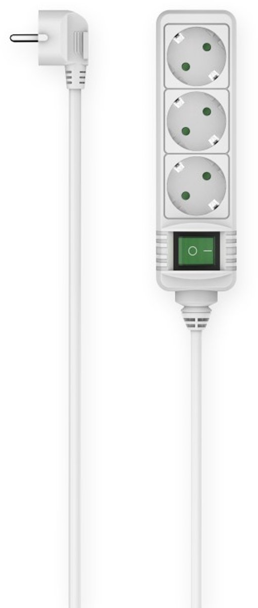 Je sluit tot 3 apparaten aan en schakelt ze met de tweepolige, groen verlichte aan/uit-schakelaar. De kabellengte is 3 m.