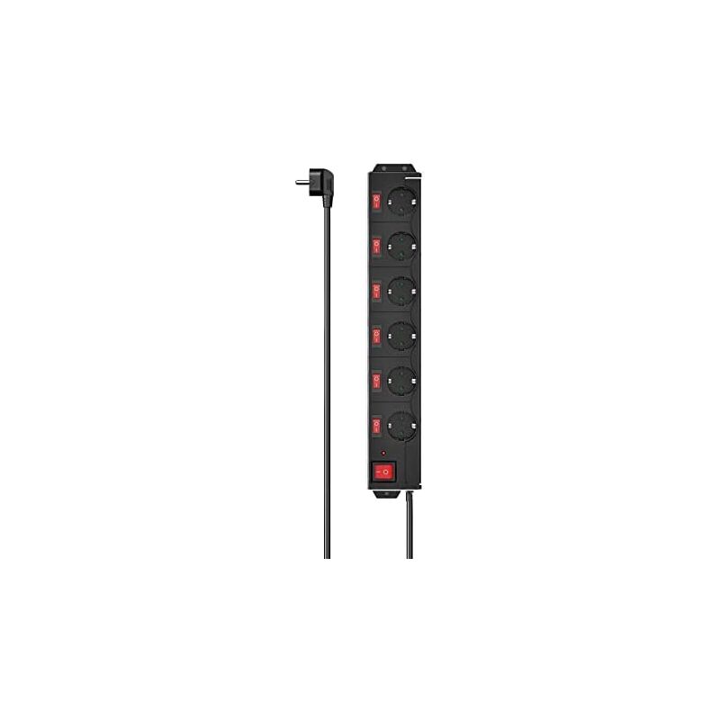 Hama Stekkerdoos, 6-voudig, overspanningsbev., 90 , ind. schakelbaar,1,4m Kabel - Zwart