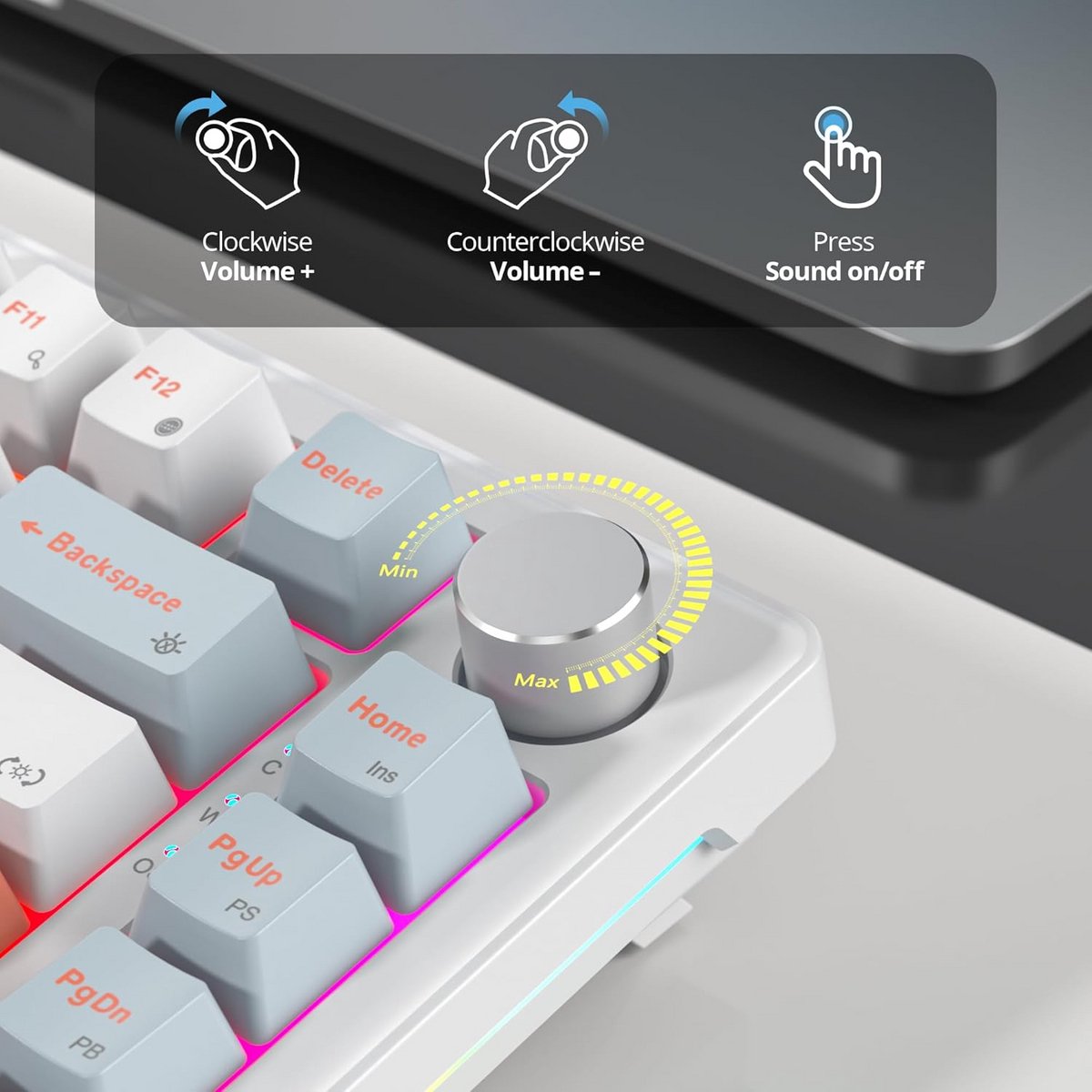 Krachtig 82-toetsen mechanisch toetsenbord, perfect voor serieuze gamers en productiviteit. Dit compacte, ruimtebesparende 75% TKL-toetsenbord beschikt over een geavanceerde gasket-structuur voor een superieure, gedempte typervaring. Voorzien van duurzame PBT keycaps die voorzien zijn van levendige, heldere RGB-achtergrondverlichting. Dit toetsenbord is hot-swap compatibel, waardoor u de mechanische schakelaars eenvoudig kunt verwisselen zonder soldering. Plug-and-play met Windows en Mac. Alle toetsen zijn voorzien van anti-ghosting technologie, zodat geen enkele toetsaanslag gemist wordt tijdens intense games of werk. Inclusief USB-C kabel.