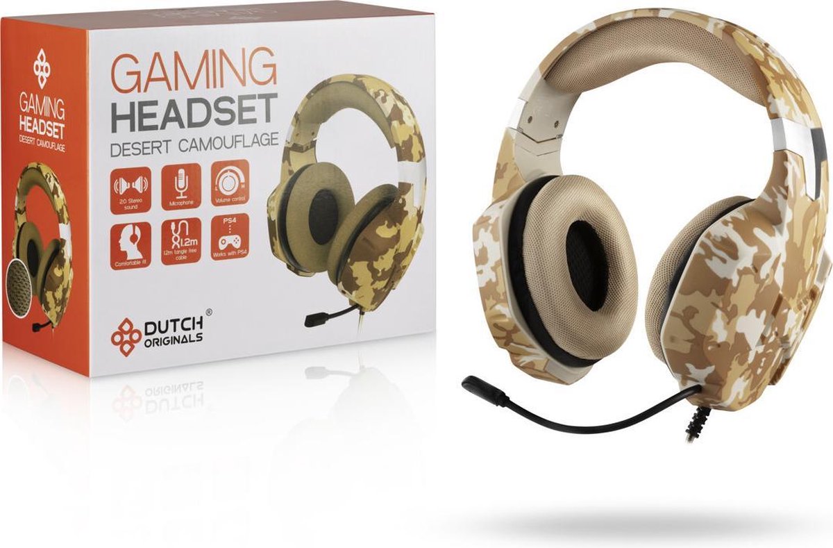 Dutch Originals - Game koptelefoon - Met microfoon - Zandkleur camouflage