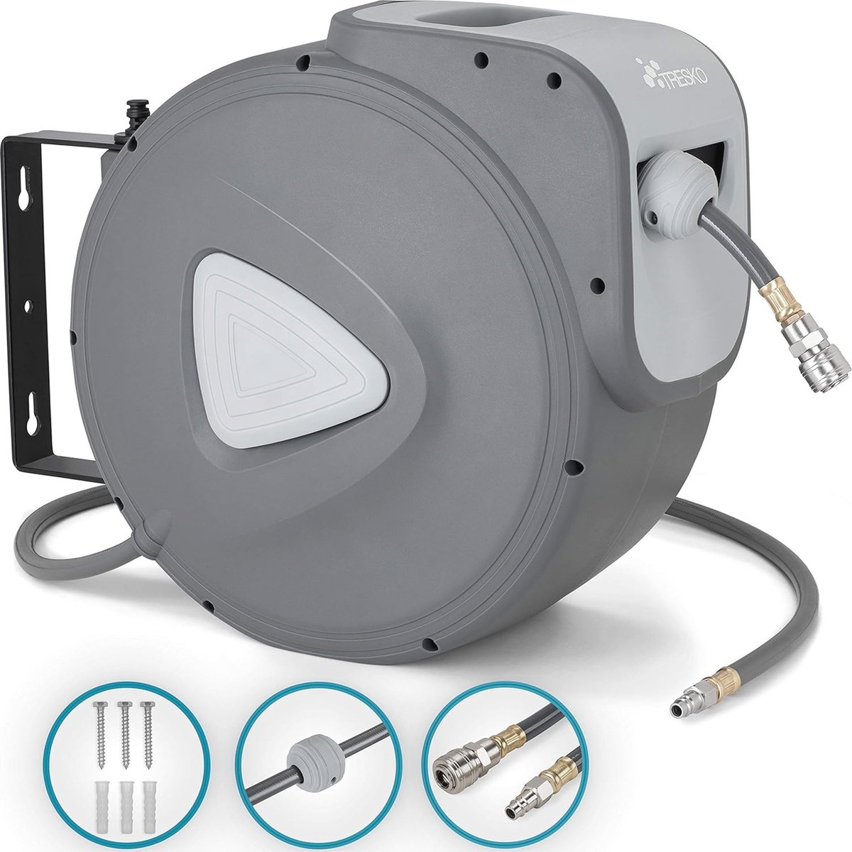 Ontdek het ideale oplossing voor het opbergen van hogedrukslangen met deze 20 m slangtrommel. Dit slimme oprolsysteem in een discreet grijs ontwerp is perfect voor wandmontage en wordt geleverd met alle benodigde schroeven en montagemateriaal. Het systeem is traploos instelbaar en heeft een terugrolbegrenzer voor veilig gebruik. Inclusief een aansluitslang voor de druktank of compressor. Met een draaibare functie tot 180° en e... lees meer over dit product