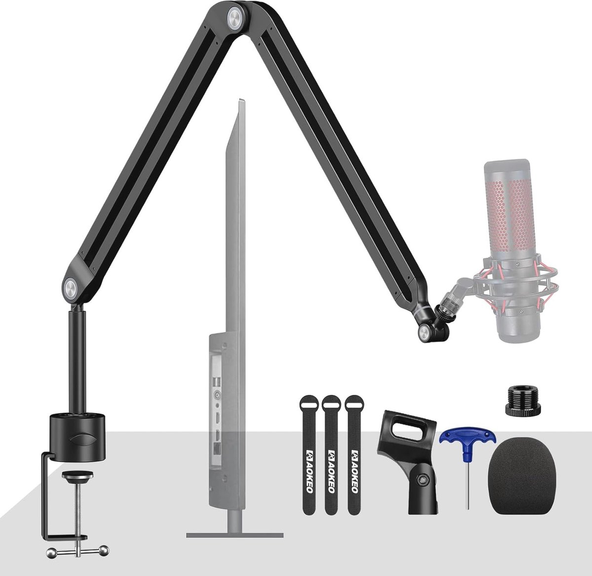 Deze verstelbare microfoonarm is perfect voor het bevestigen van microfoons zoals de Blue Snowball en Blue Yeti en past op de meeste microfoons op de markt. Geschikt voor diverse toepassingen zoals YouTube video-opnames voice-over studio's podcasts en gaming. Gemaakt van hoogwaardig staal met een poedercoating voor duurzaamheid en roestbestendigheid. De microfoonstandaard kan 360° draaien en is uitgerust met een stevige veerondersteuning die de arm stabiel houdt. Met een slimme desktopclip is deze stand eenvoudig te bevestigen aan bureaus tot 6 cm dik. Inclusief adapter voor compatibiliteit met verschillende microfoons.