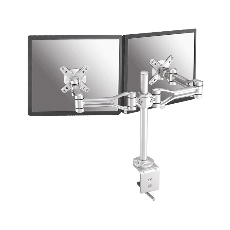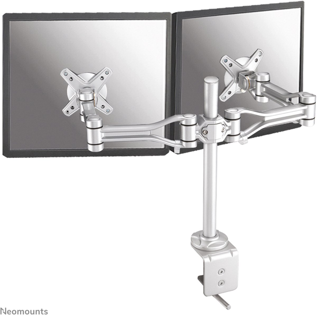 Met deze Neomounts monitorarm, model FPMA-D1030D, bevestigt u twee flatscreens aan het bureau via een bureauklem. Door gebruik te maken van een monitorarm profiteert u optimaal van de mogelijkheden van uw monitor. De monitorarm is eenvoudig in hoogte en diepte te verstellen. Tevens kunt u het scherm kantelen, zwenken en roteren. Hierdoor creëert u de ideale ergonomische werkhouding. Dit verkleint de kans op nek- en rugklachten. Kabels zijn netjes weg te werken aan de onderzijde van de horizontale arm. De FPMA-D1030D heeft 3 draaipunten en is geschikt voor schermen t/m 24" (61 cm). Het draagvermogen van de arm is 8 kg per scherm. Dit product is geschikt voor schermen met een VESA gatenpatroon van 75x75 mm of 100x100 mm. Heeft u een afwijkend (groter) gatenpatroon, dan kunt u dit oplossen met een van onze VESA verloopplaten.