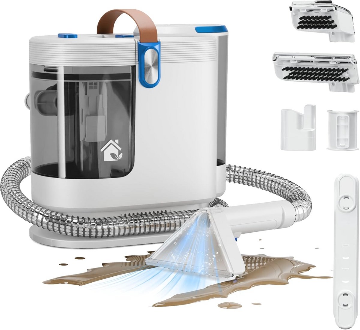 Deze draagbare tapijtreinigingsmachine is uitgerust met een krachtige 15 kPa stofferingsreiniger en komt met drie handige gereedschappen voor het effectief reinigen van tapijten, banken en zelfs autointerieurs. Dankzij de grote watertank en het lange netsnoer van 16,4 ft kun je eenvoudig grotere oppervlakken reinigen zonder vaak te moeten bijvullen. Ideaal voor het verwijderen van vlekken en het diep reinigen van textiel. lees meer over dit product