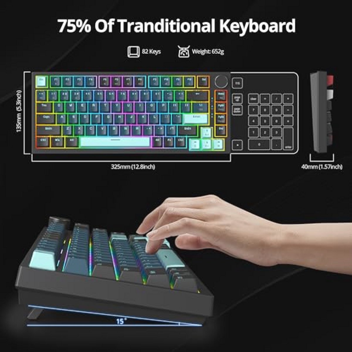 Ontdek het ideale RGB mechanische toetsenbord, perfect voor gamers! Dit toetsenbord heeft 82 toetsen met duurzame PBT-toetsenkapjes en een heldere RGB-achtergrondverlichting voor een prachtige speelervaring. Het minimalistische en compacte ontwerp zorgt ervoor dat het ruimte bespaart op je bureau en gemakkelijk mee te nemen is. Het toetsenbord is compatibel met zowel Windows als Mac en vereist geen stuurprogramma; het is simpe... lees meer over dit product