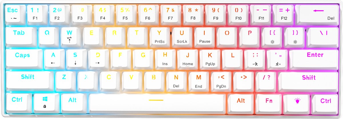 Furycube A61K - Mechanisch Gaming Toetsenbord - 61 Toetsen - Regenboogverlichting - Bedraad - Wit