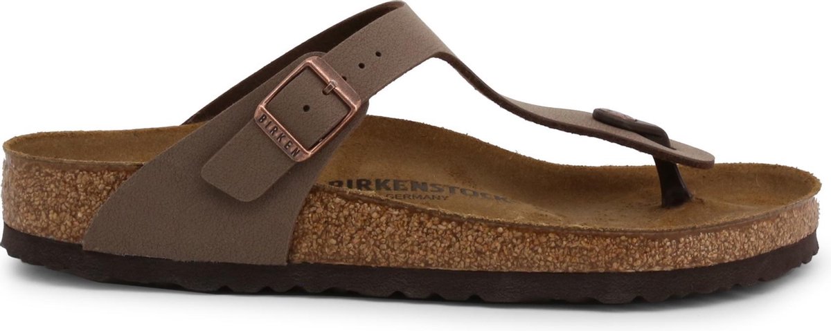 Birkenstock Gizeh bruin sandalen dames De Birkenstock Gizeh comfortabele, hoge kwaliteit sandalen voor dames en heren van iconisch design. De slipper is voorzien van geoliede nubuck (leer) voor een extra luxe uitstraling. Kleur: bruinMateriaal zool: kurkMateriaal bovenwerk: nubuck leer Birkenstock eigenschappenHet hart van alle modellen is het originele BIRKENSTOCK voetbed. Hoewel het is nu een synoniem voor buitengewoon comfort, werd het woord voetbed voor het eerst gebruikt door BIRKENSTOCK in de jaren 1930 voor de anatomisch gevormde inlegzolen, die speciale ondersteuning kenmerken. In tegenstelling tot andere orthopedische correctieve en ondersteuningsinbrengingen destijds, die zijn ontworpen ter ondersteuning en behandeling vervormde voeten, werd het oorspronkelijke BIRKENSTOCK voetbed ontworpen om het behoud van gezonde voeten bevorderen. De constructie, geeft het gevoel alsof je in het zand staat. Dit maakt het mogelijk om zo comfortabel mogelijk uren te staan. De originele BIRKENSTOCK voetbed heeft een uniek schokabsorptie systeem. Met zijn anatomische lijstwerk, ondersteunt en verlicht het de druk op je voeten als je loopt. Dit zorgt voor verlichting voor uw voeten, gewrichten en rug. Het geeft je voeten stevige steun en ondersteunt het natuurlijke weefsel. Op hetzelfde moment, oefent het je beenspieren. Dit ondersteunt de gezondheid en bevordert het welzijn. Dit wordt mogelijk gemaakt door de flexibele kurk en latex-kern, die de basis vormt en referentiepunt voor alle andere model ontwikkelingen op BIRKENSTOCK - tot aan het heden. Tot op vandaag worden alleen natuurlijke materialen uit duurzame bronnen van grondstoffen die worden gebruikt in de originele BIRKENSTOCK voetbed: licht natuurkurk, selecteer jute, hoogwaardige natuurlijke latex en fluweelzachte suède als de bekleding. Het resultaat? Onvergelijkbaar comfort en een optimaal voetklimaat.