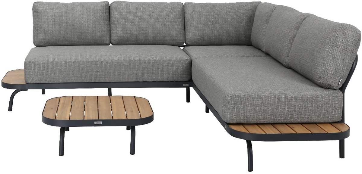 PORTO LOUNGE CORNER SET PROMO / METAL STEEL POWDER COATED ANTHRACITE RAL 7016 / WOOD ACACIA LIGHT TEAK LOOK. / SEAT CUSHION: STANDARD + BACK CUSHION: STANDARD FONTELINA C/168 material_type POWDER COATED cushion_color FONTELINA C/168 material_color ANTHRACITE RAL 7016