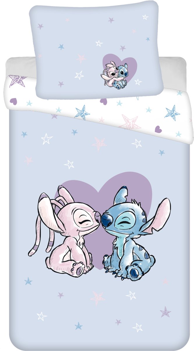 Lilo & Stitch dekbedovertrek heart. Een lief dekbedovertrek van de kleine alien Stitch. Deze ondeugd is een hit door de populaire films Lilo & Stitch. Stitch heeft een prominente plek gekregen op dit mooie dekbedovertrek en kussensloop. Het overtrek is dubbelzijdig bedrukt, waardoor deze reversible is. Een geweldig cadeau voor de liefhebbers van deze kleine vreemdeling en een leuk kado suggestie voor een verjaardag of de feestdagen.