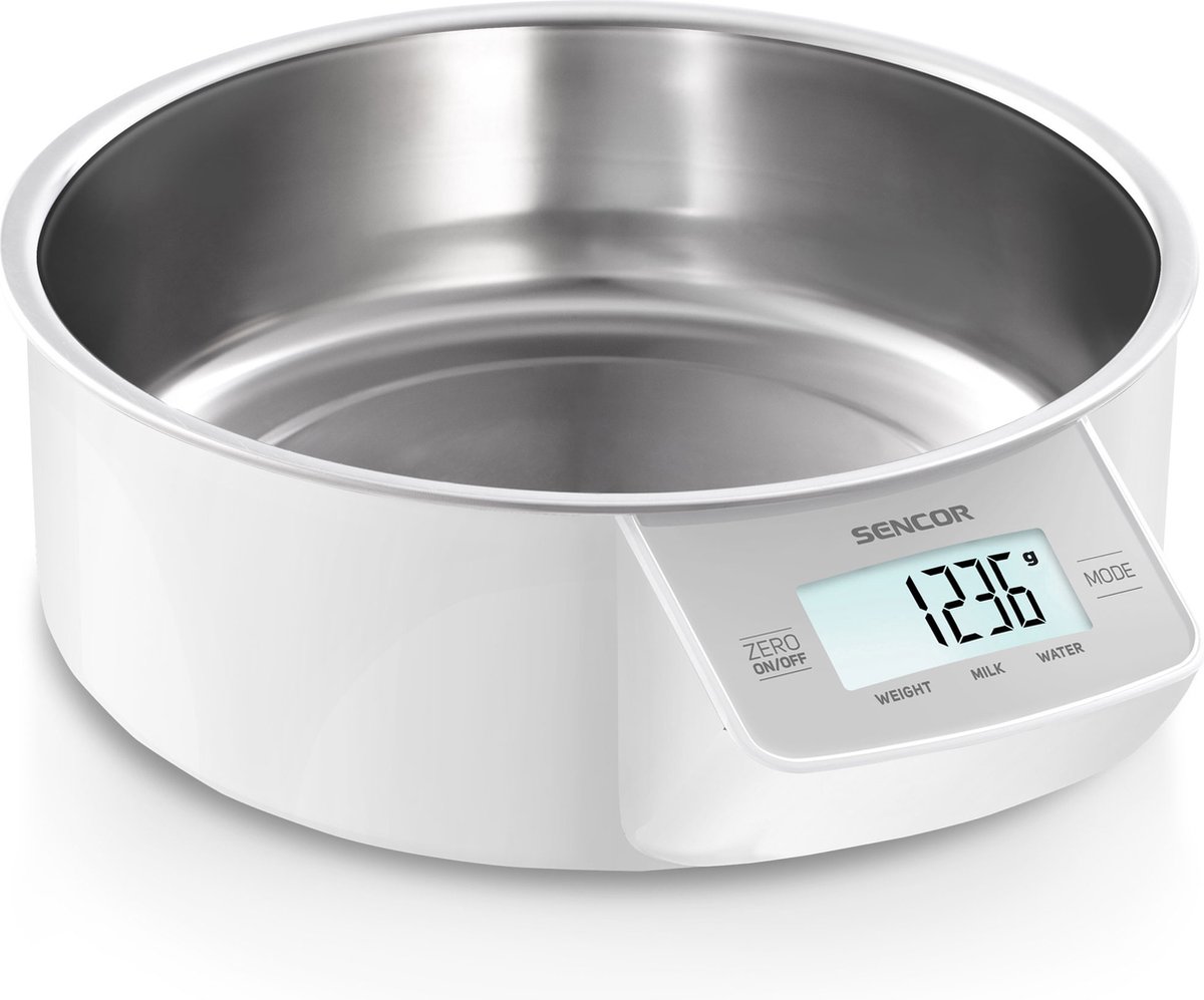 De SENCOR SKS 4030WH keukenweegschaal heeft een uitneembare roestvrijstalen kom voor een eenvoudige reiniging. De maximale weegbare capaciteit van deze keukenweegschaal is 5 kilogram, en dankzij de 4 ingebouwde weeg-sensoren is het gewicht erg accuraat.