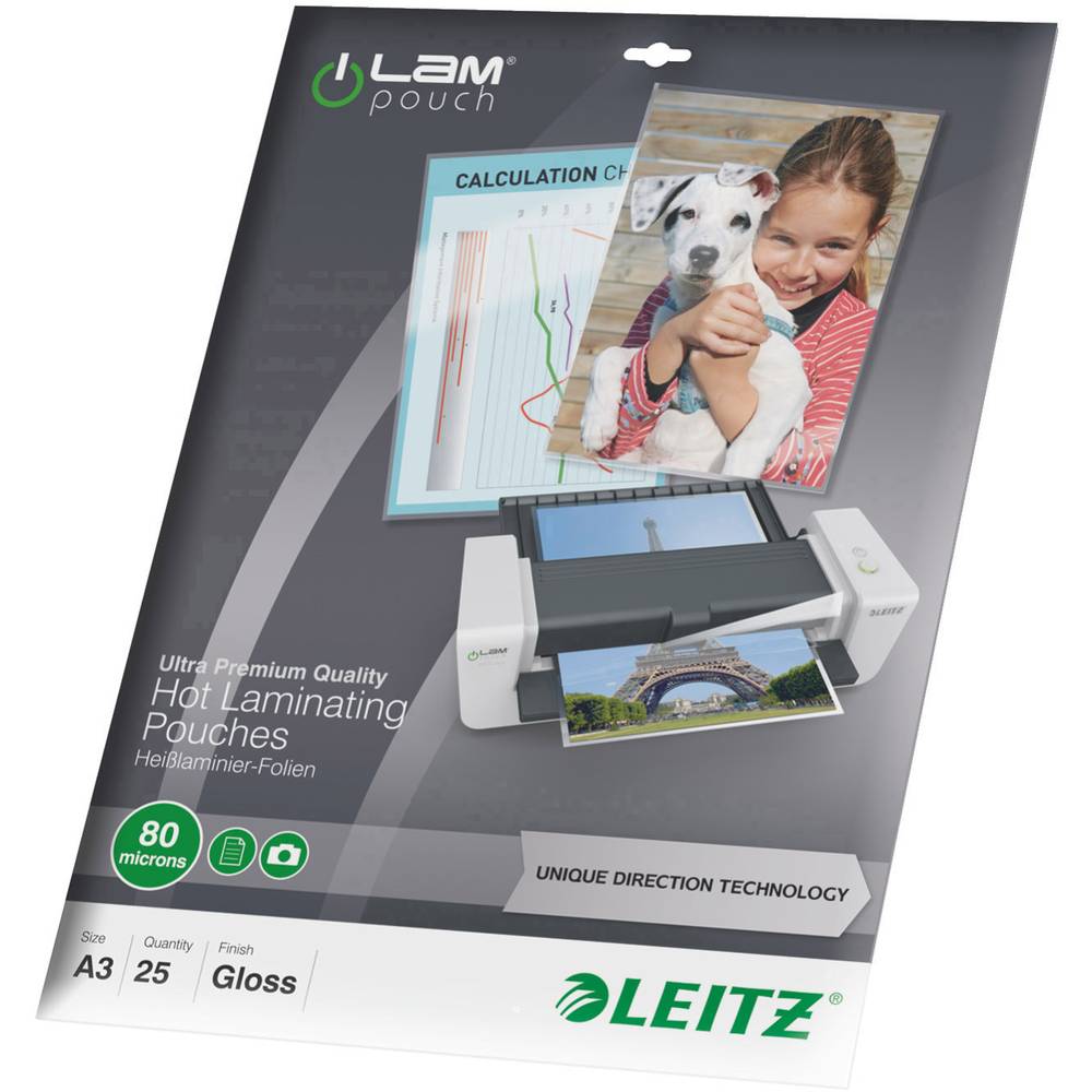 Met onze premium kwaliteit lamineerhoezen kunt u uw documenten voorzien van een stevige bescherming tegen vuil, vloeistoffen en vocht. Gegarandeerd probleemloos lamineren met onze unieke Leitz UDT lamineerhoezen. Dankzij de eenvoudige invoer door de Unique Direction Technology verdwijnen de pijlen die de invoerrichting aangeven na het lamineren. Dit zorgt voor een moeiteloze laminering zonder gedoe.