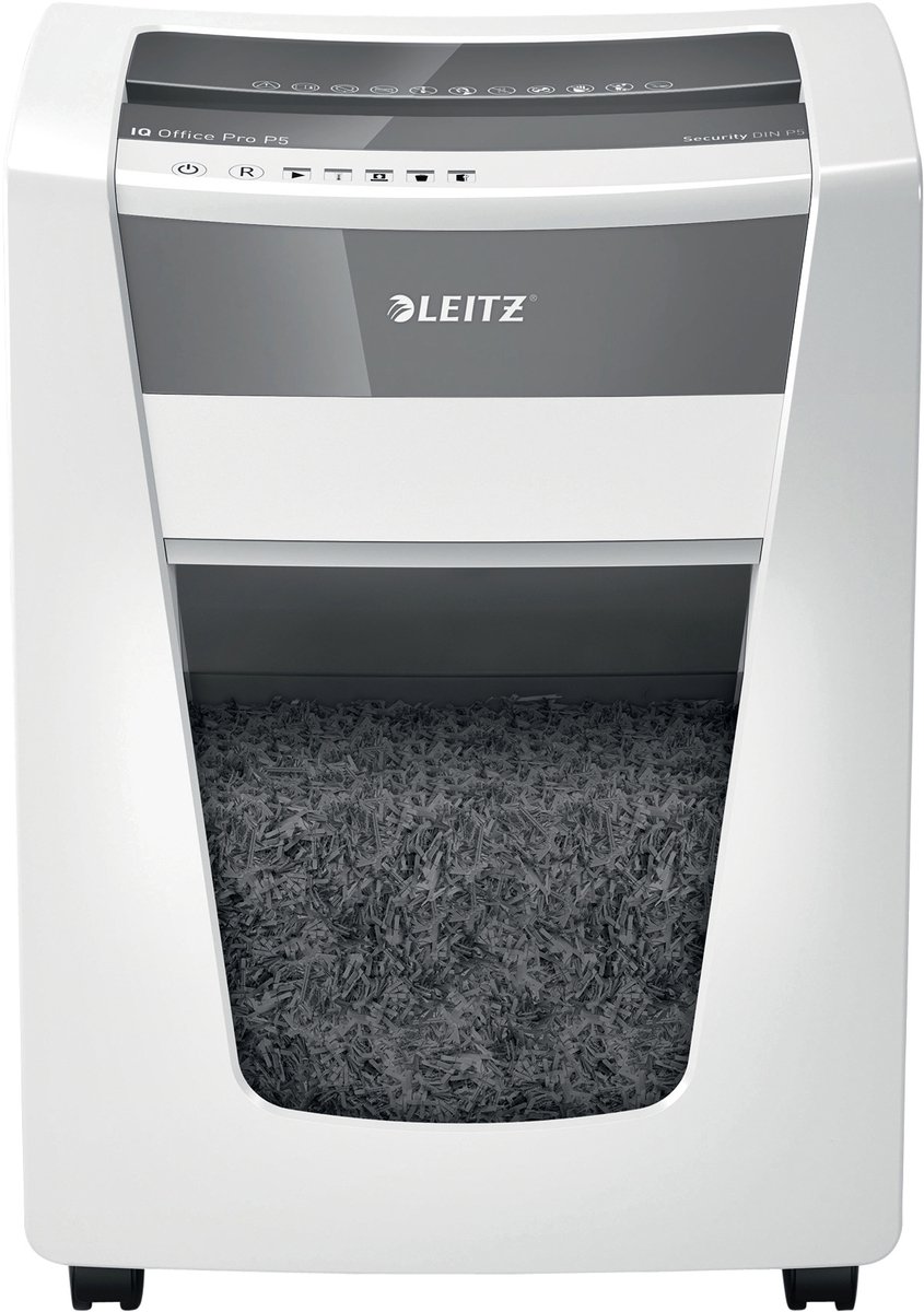Met de nieuwe Leitz IQ Office Pro papiervernietigers haal je niet alleen een stijlvolle toevoeging aan je kantoor, maar ook de beste prestaties en optimale veiligheid in huis. Deze papiervernietiger heeft een veiligheidsniveau van DIN P5 cut, wat betekent dat de versnippering ultraklein is en maar liefst 3 keer veiliger dan standaard micro cut. Zo weet je zeker dat jouw vertrouwelijke documenten veilig en onherkenbaar worden vernietigd.