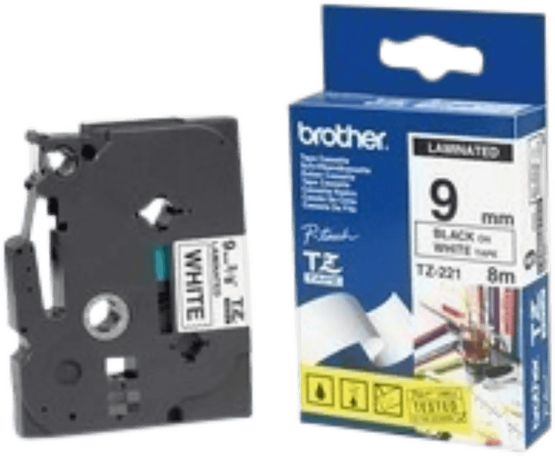 Brother TZe-221 op Wit (9 mm x 8 m) - Zwart