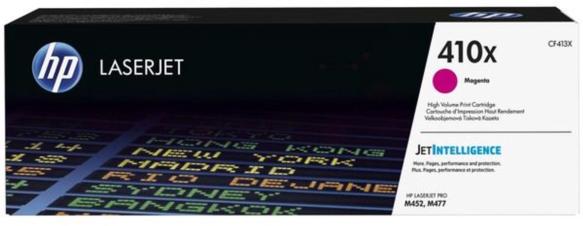 Originele CF413X HP high-capacity tonercartridges met JetIntelligence om meer pagina's dan ooit te printen bij hoge snelheden(1,2),met antifraudetechnologie om een consistente HP kwaliteit te waarborgen.