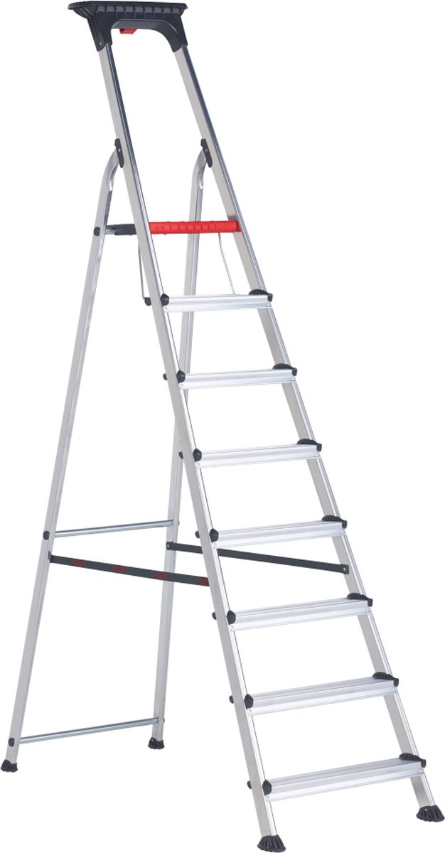 De Double Decker heeft niet alleen handige extra's, maar is ook veilig en stabiel. Met 8 treden, inclusief het bordes, biedt de trap een maximale werkhoogte van 3,65 meter en een maximale stahoogte van 1,65 meter. De trap is belastbaar tot 150 kg en voorzien van antislip treden voor extra veiligheid. Daarnaast heeft de trap extra grote slijtvaste trapvoeten, wat zorgt voor optimale stabiliteit. Met een gewicht van slechts 9.5 kg is de trap bovendien lichtgewicht en gemakkelijk te verplaatsen.