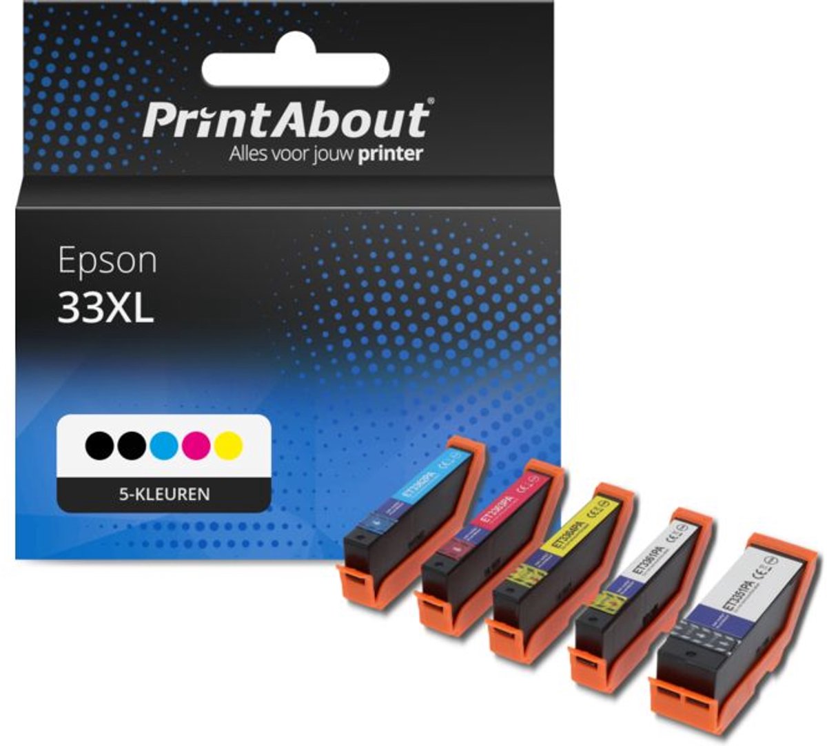 De PrintAbout inktcartridge / alternatief voor de originele Epson T3357 / 5-kleuren Dat is maar liefst -47 89,5ml meer dan het origineel. Daarnaast krijg je 100% kwaliteit volgens ISO 9001 norm met levenslange garantie.
