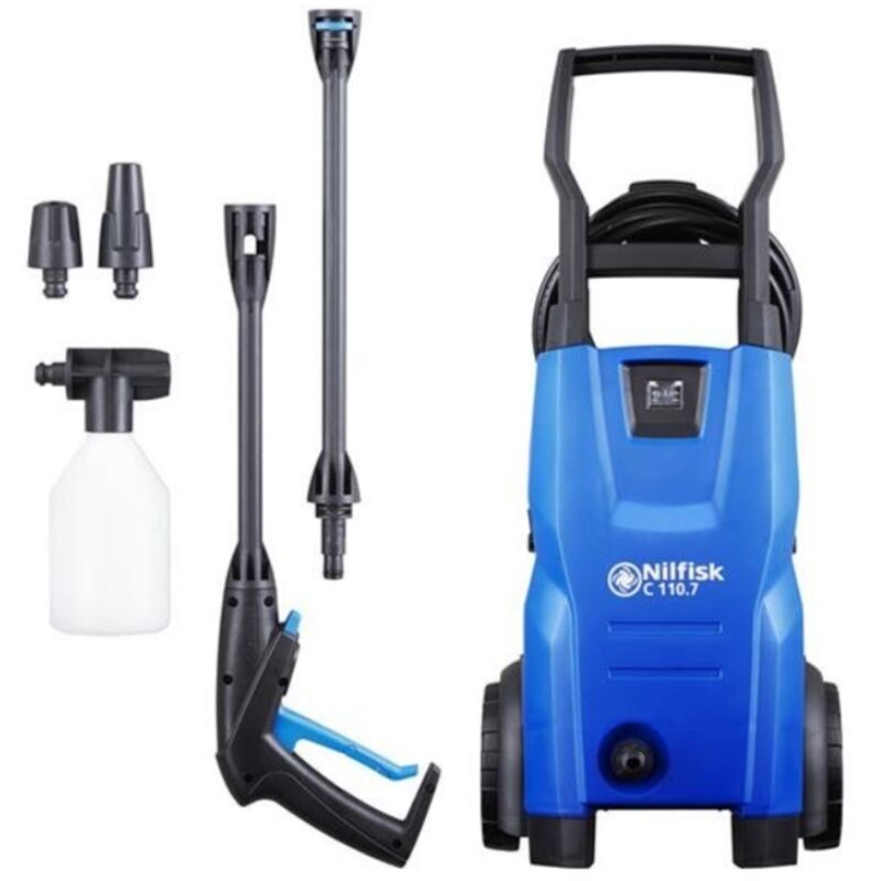 Met de Nilfisk C 110.7-5 X-TRA EU hogedrukreiniger in huis, maak je korte metten met al het vuil om je heen. Dankzij de compacte en gebruiksvriendelijke vormgeving, gecombineerd met de krachtige prestaties, is dit de ideale keuze voor al je schoonmaakklussen.