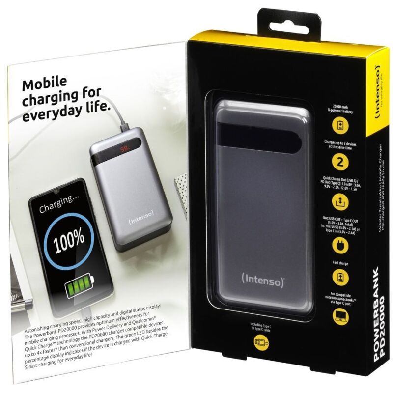 Ervaar nu de optimale laadprocessen en het gebruiksgemak van de Intenso PD20000 Powerbank. Nooit meer zorgen over een lege batterij, maar altijd de vrijheid om onderweg uw apparaten op te laden.