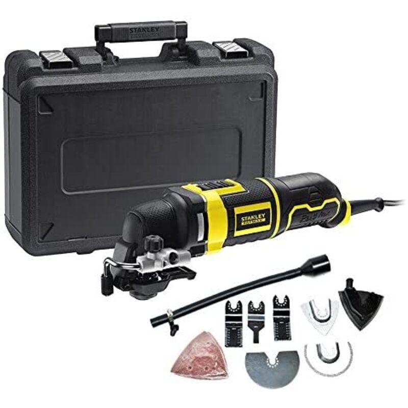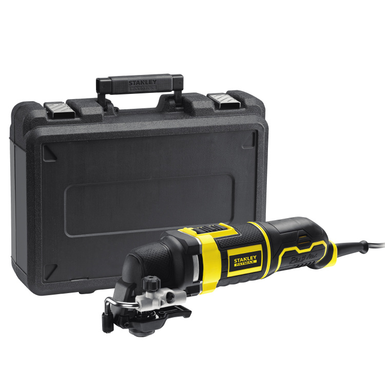 Stanley Fatmax FME650K-QS Multitool: Een veelzijdige krachtpatserMet de Stanley Fatmax FME650K-QS Multitool haal je een echte veelzijdige krachtpatser in huis. Of je nu hout, metaal, gipsplaten, kunststof of glasvezel wilt zagen of snijden, deze multitool kan het allemaal. Maar dat is nog niet alles, want met de juiste accessoires kun je ook schrapen, schuren of slijpen.Altijd alles bij de handDankzij de uitgebreide set ... lees meer over dit product