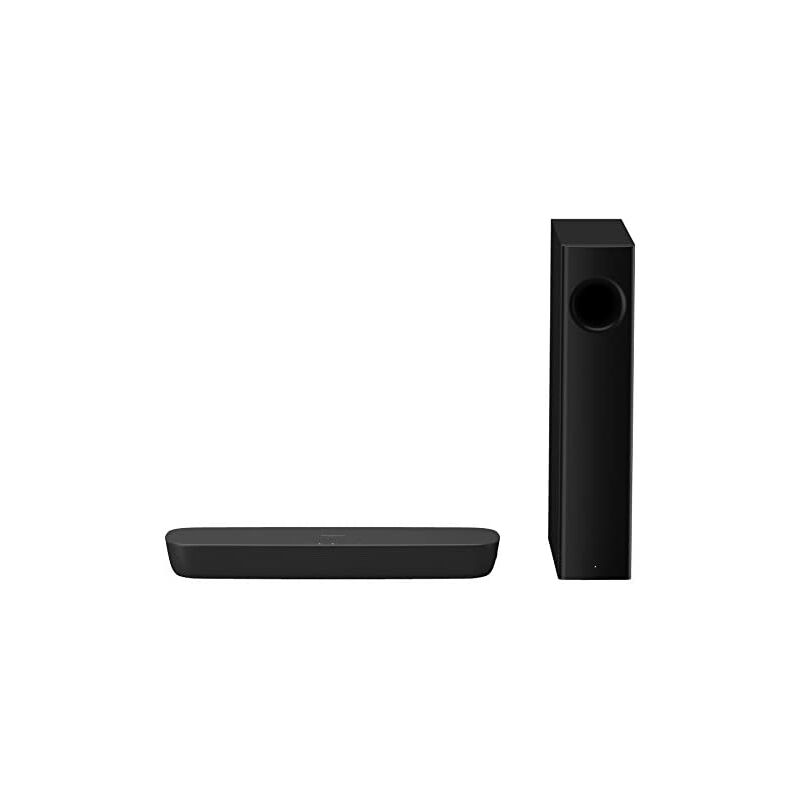 De soundbar is uitgerust met twee 10x4 centimeter speakers en een versterker van 80 Watt. Daarnaast zorgt de H.BASS functie voor een verbeterde weergave van lage tonen en bassen, terwijl de Virtual Surround technologie de hele ruimte vult met geluid. Met de Sound Modes kunt u het geluid aanpassen aan uw omgeving. De draadloze subwoofer met een 14 cm speaker voegt extra diepte toe aan het geluid, waardoor u een meeslepende audio-ervaring beleeft.