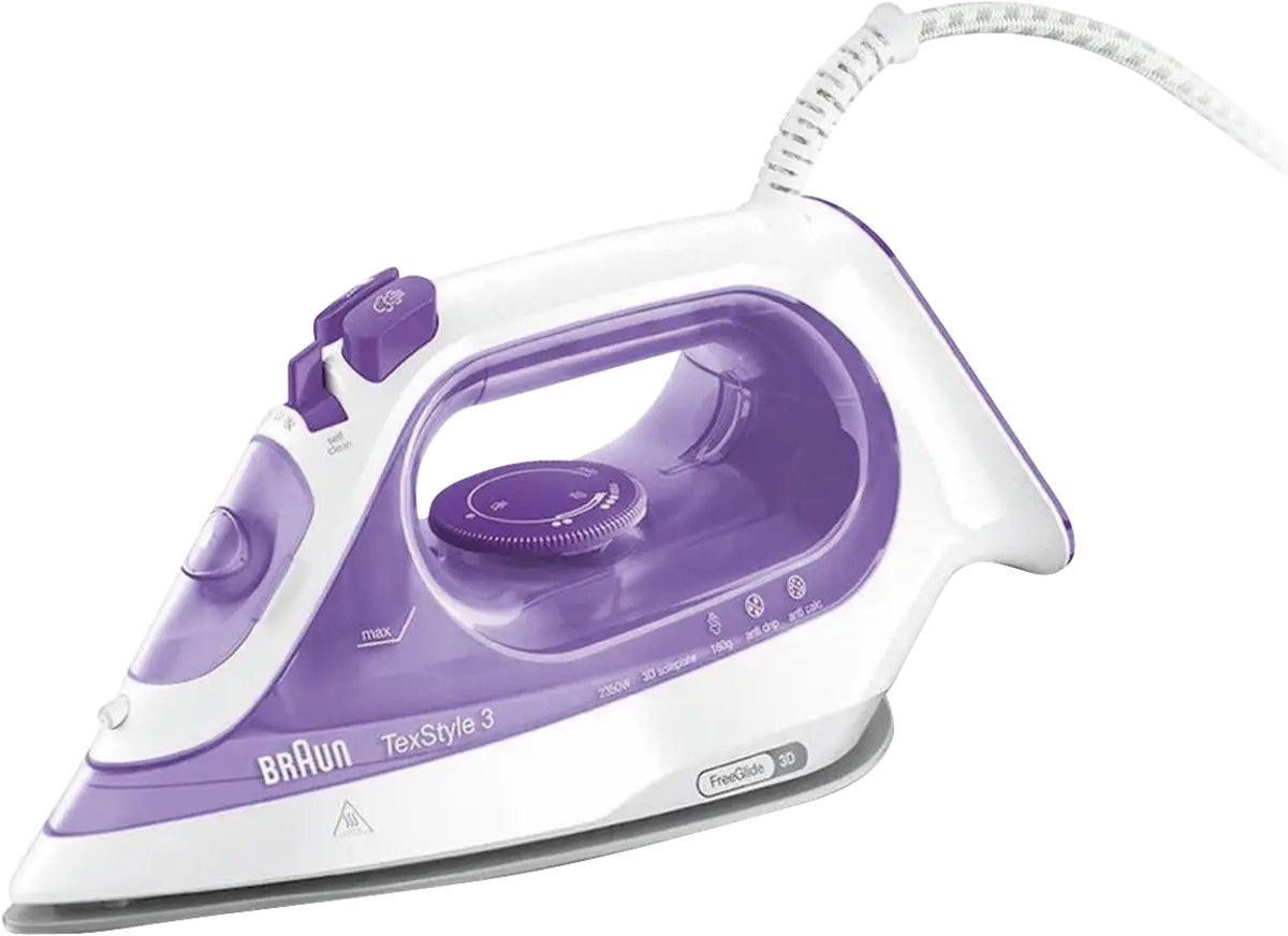 Het Braun TexStyle 3 SI3042 VI strijkijzer produceert een krachtige variabele stoomafgifte die diep doordringt in uw strijkgoed. Met een extra stoomshot van 160g kunt u zelfs verticaal kreukels uit kleding en gordijnen verwijderen. Het is de ideale strijkpartner om zelfs de meest hardnekkige kreukels aan te pakken.
