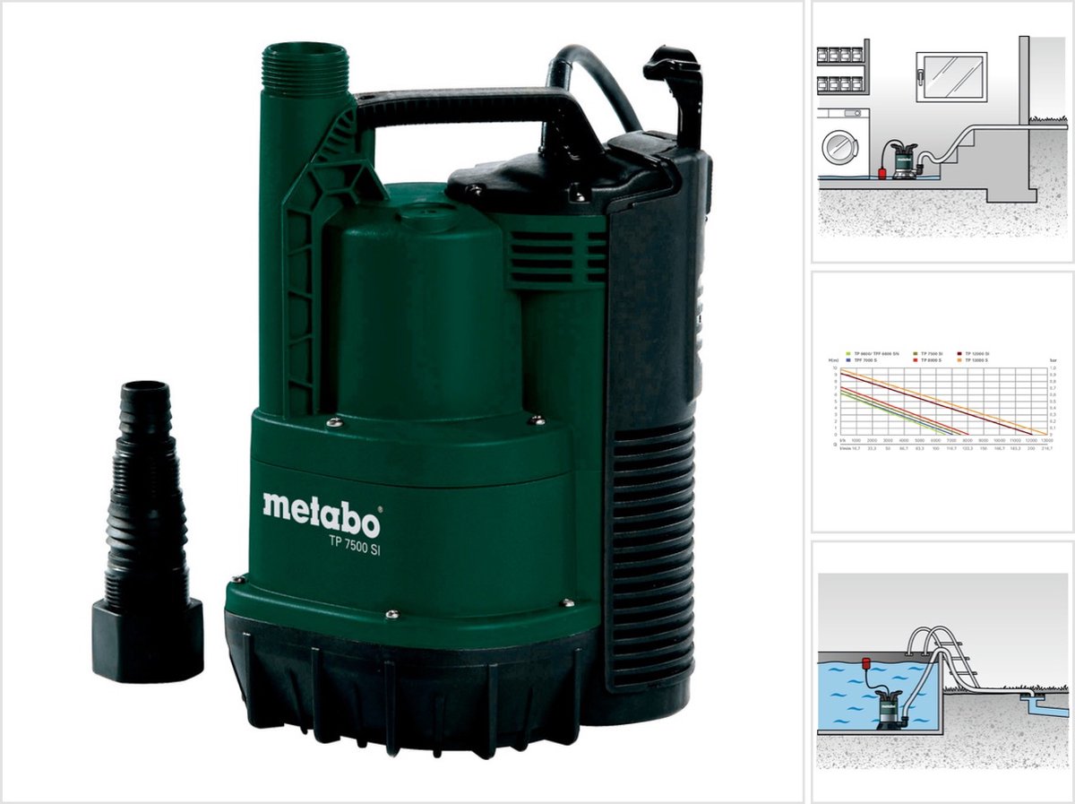 De Metabo TP 7500 SI 250750013 is een dompelpomp die ideaal is voor het uitpompen, leegpompen en rondpompen van schoon water in vaten, waterbekkens, zwembaden of overstroomde kelders. Dankzij de kunststof behuizing, geïntegreerde vlotterschakelaar en terugslagklep met automatische ontluchting biedt deze dompelpomp uitstekende prestaties en gebruiksgemak.