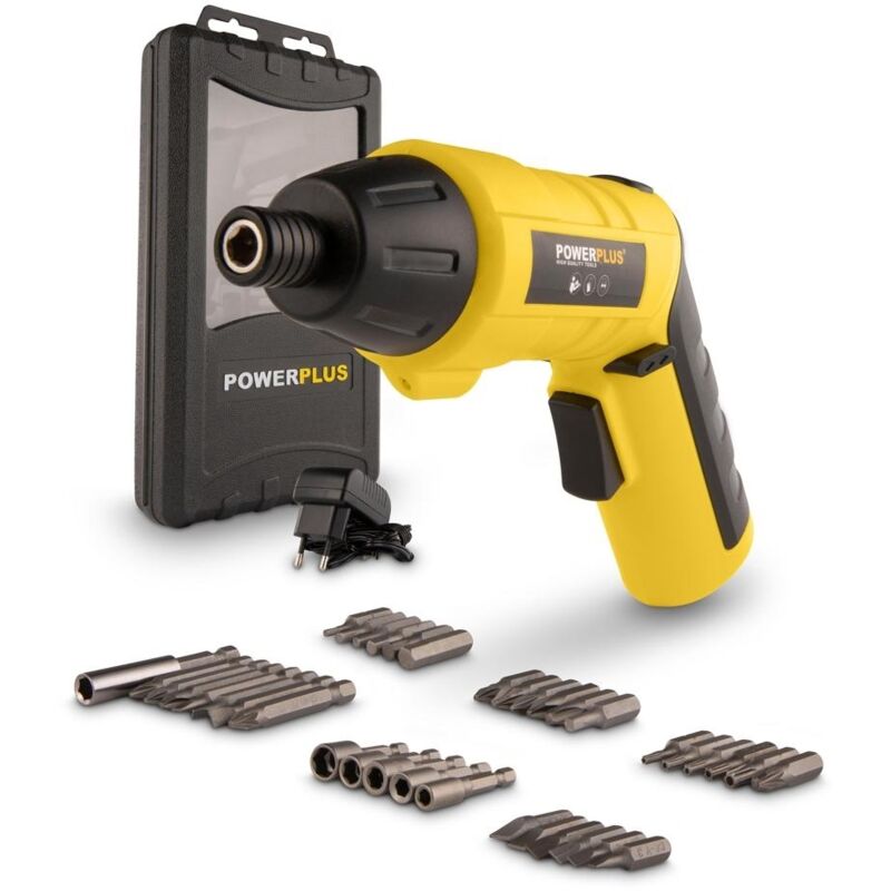 De POWX00405 is een draadloze 3,6V schroevendraaier van Powerplus voor simpele schroefklusjes. Je krijgt er maar liefst 37 accessoires bij: 1 magnetische bithouder van 60mm, 24x25mm bits, 7x50mm bits en 5 moerdoppen. Alles zit mooi samen in een plastic opbergkoffer en je hoeft niet voor elke nieuwe bit naar de winkel te lopen.