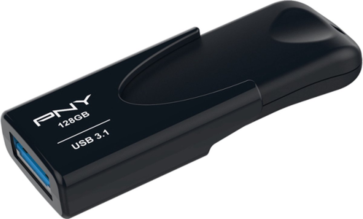 PNY Attache 4 3.1. Capaciteit: 128 GB, Aansluiting: USB Type-A (standaard usb aansluiting),USB-versie: 3.2 Gen 1 (3.1 Gen 1),Leessnelheid: 80 MB/s, Schrijfsnelheid: 20 MB/s. Vormfactor: Zonder dop, Kleur van het product: Zwart