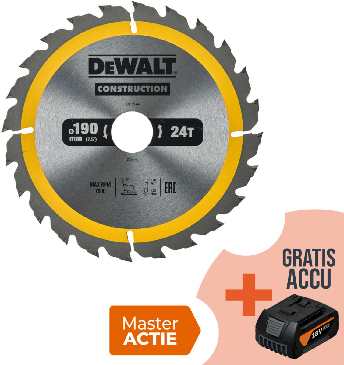 Belangrijkste kenmerken van de DeWALT Cirkelzaagblad- Diameter: 190 mm voor veelzijdig gebruik