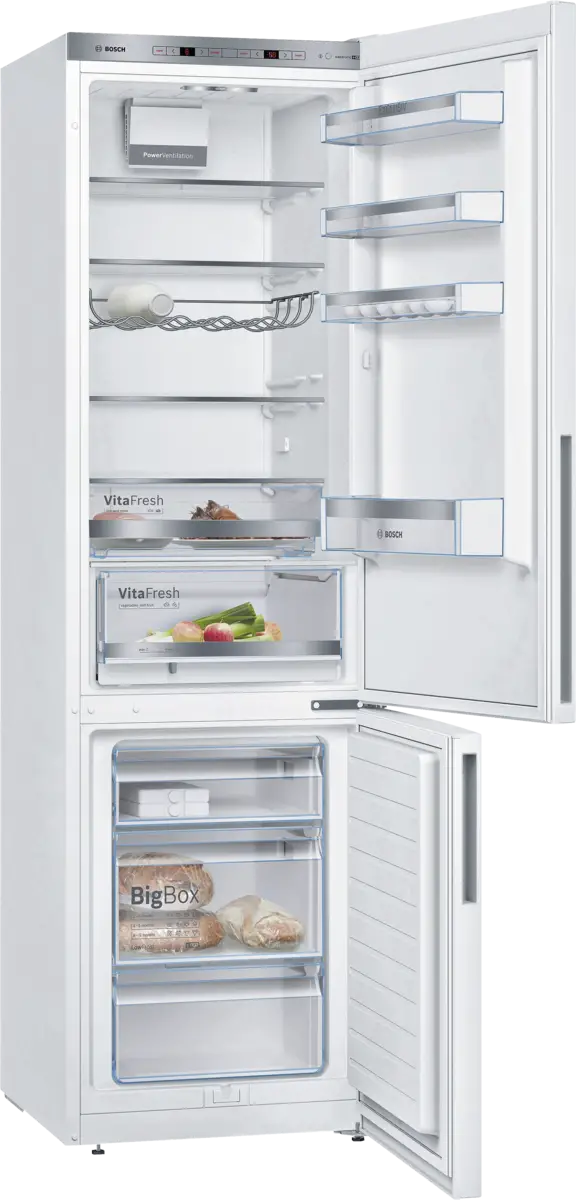 Met de Bosch KGE39AWCA koel-vriescombinatie in huis hoef je je geen zorgen meer te maken over de versheid van je voedsel. Met de 0°C lade voor vlees en vis blijven deze producten langer vers, terwijl de VitaFresh-lade zorgt voor een langere versheid van groente en fruit. De gegolfde bodem van de lade voorkomt dat vocht snel intrekt, waardoor alles langer vers blijft.