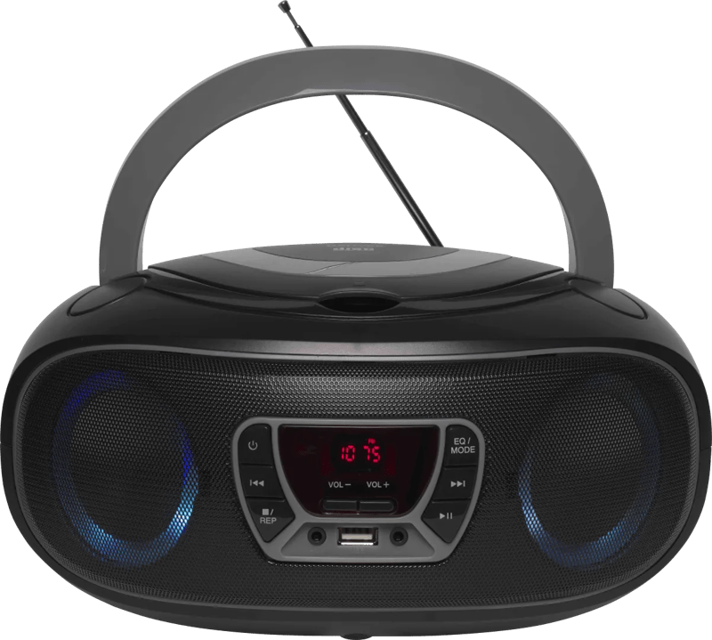 Luister naar jouw favoriete muziek met deze draagbare radio CD speler. Deze boombox is voorzien van Bluetooth, FM radio én ingebouwde LED-lichteffecten welke meebewegen op de muziek! Naast Bluetooth en FM-radio heeft deze radio ook een USB-ingang en ingebouwde CD-speler. Bovendien kun je hem overal mee naar toe nemen dankzij het handvat! Deze Bluetooth radio werkt op zowel netstroom als op batterijen!