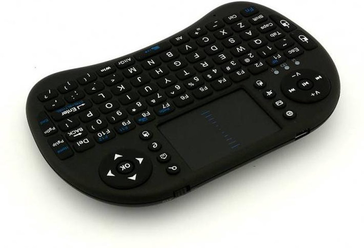 Rii i8 - zeer compact toetsenbord met muis. Prettig klein en te gebruiken op tal van apparaten. Multimedia afstandsbediening met touchpad en oplaadbare accu.
