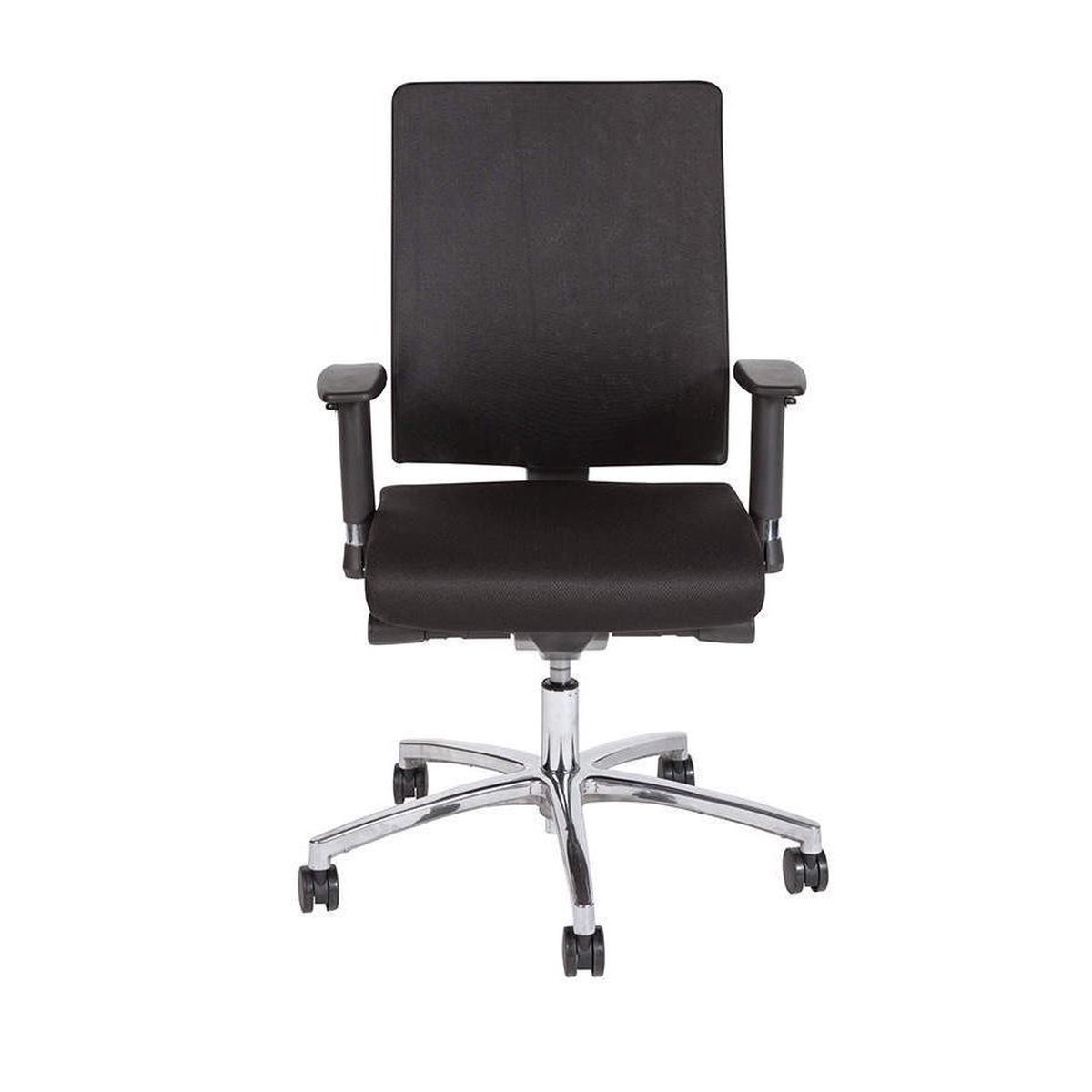 Schaffenburg serie 045 bureaustoel. Zitting stof zwart en rugleuning zwart mesh Onderstel verchroomd aluminium Armleuningen in hoogte verstelbaar Rugleuning traploos in hoogte instelbaar Synchroonmechanisme lees meer over dit product