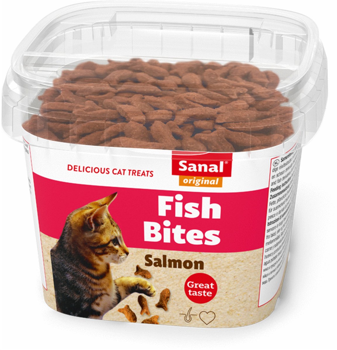 Sanal Fish Bites Cat Treats - Kattensnack - Zalm 75g: een gezonde traktatie voor uw kat