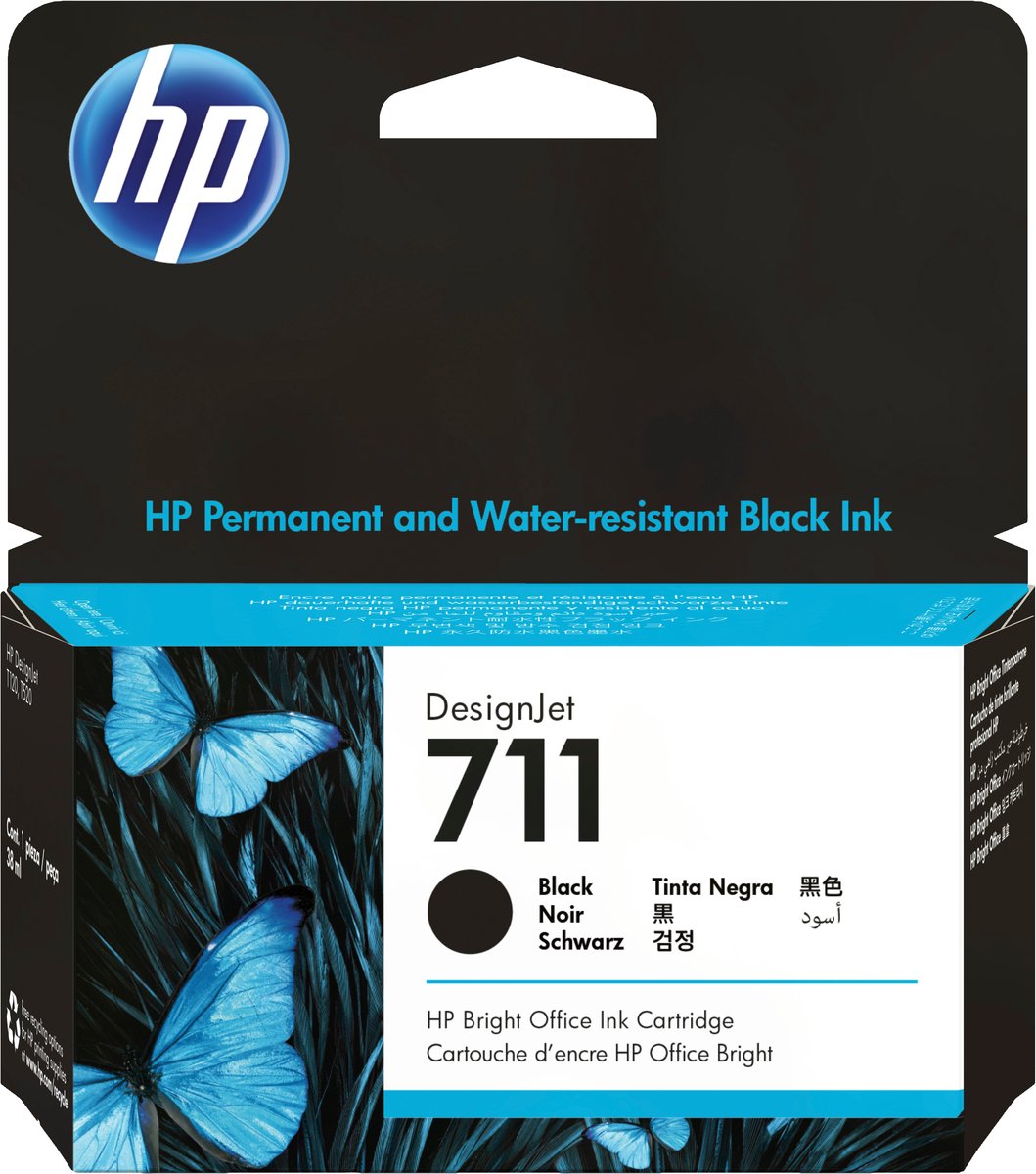 De HP 711 zwarte inktcartridge heeft een inhoud van 38 ml en biedt consistente, accurate resultaten. U bent verzekerd van scherpe, nauwkeurige lijnen en prints die snel drogen en bestand zijn tegen vlekken.