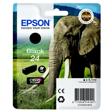 Epson Elephant Singlepack Black 24 Claria Photo HD Ink - Zwart