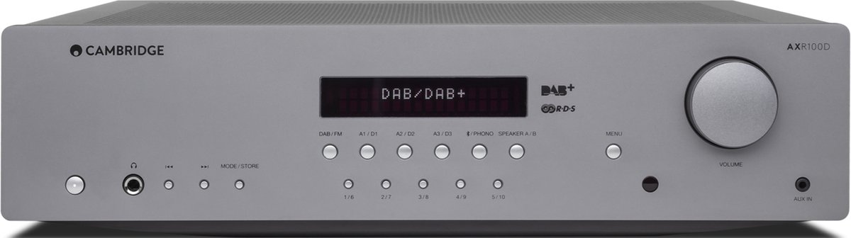 De Cambridge Audio AXR100D stereo receiver is hét ideale middelpunt van je hifi-installatie en het luxere broertje van de 'gewone' AXR100. De combinatie van een uitstekende en zeer krachtige stereo versterker met een DAB+/FM RDS-tuner, Bluetooth en zeer diverse aansluitingen, maakt deze Cambridge receiver buitengewoon interessant. Dankzij die ingebouwde DAB+ tuner ben je ook helemaal klaar voor de toekomst! En zoals je van een Cambridge versterker natuurlijk mag verwachten, klinkt de AXR100D meer dan prachtig.