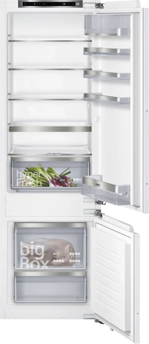 De Siemens KI87SAFE0 is een inbouw koel-vriescombinatie die uitblinkt in efficiëntie en gebruiksgemak. Met geavanceerde functies zoals lowFrost-technologie en een hyperFresh Plus lade, blijft je voedsel tot wel twee keer langer vers. Dankzij de vochtigheidsregeling in de hyperFresh Plus lade kun je groente en fruit in optimale conditie houden.