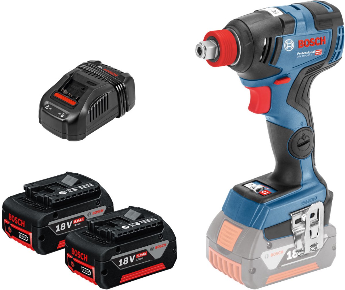 Bosch Blauw GDX 18V-200 C Professional Universele slagschroevendraaier / slagmoeraanzetter | 5.0Ah in L-Boxx - 06019G4201