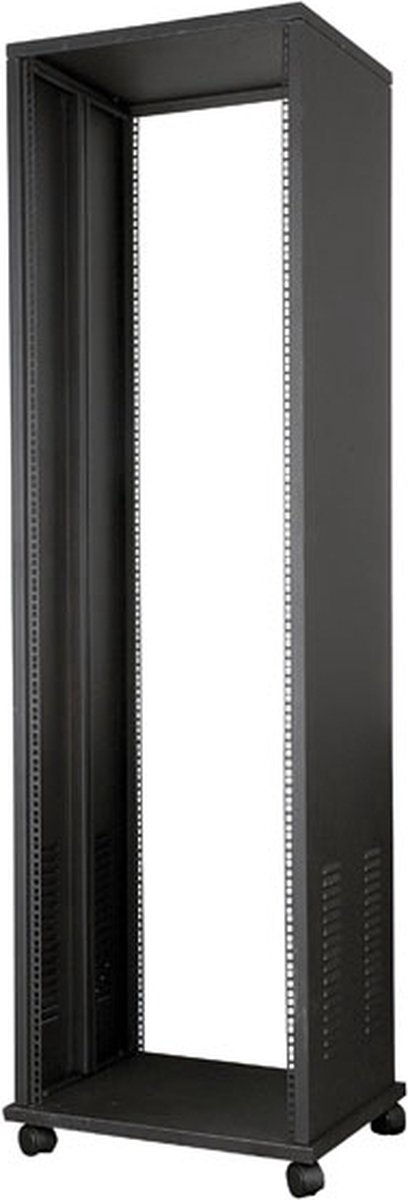 Dit professionele installatie rack biedt plaats aan 40U 19 inch producten. Het open rack wordt geleverd met zowel voetstandaards als wielen.
