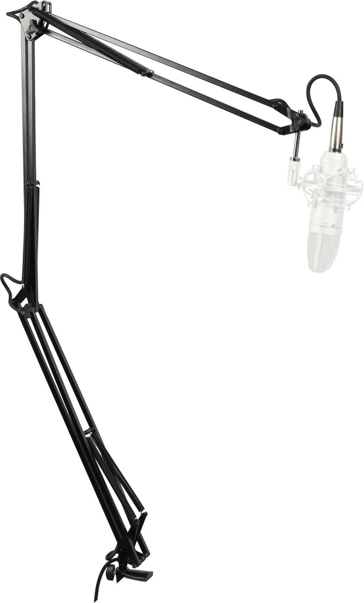 De Innox IVA 10 XLR betreft een broadcast statief die inclusief XLR kabel en hardware geleverd wordt. Je kunt het statief aan het tafelblad bevestigen met behulp van de meegeleverde tafelklem.