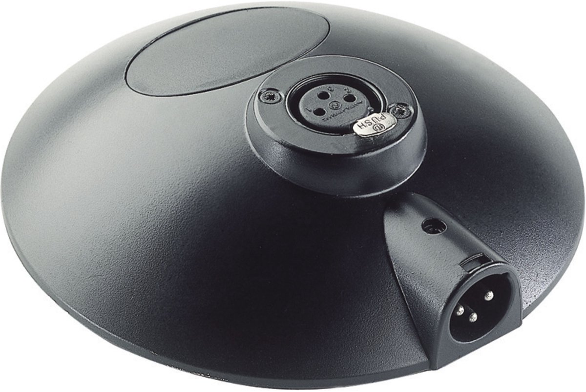 Fraai gevormde, compacte voet van zinkgegoten gietijzer. 3-Pin XLR-connectoren (mannelijk/vrouwelijk). Volledig bekabeld. Kraakvrij schakelen. Met fantoomvoedingsindicatielampje. Met schakelaar (grijs),. 2 Diodes geven bedrijfsstatus aan (spanning - microfoon aan/uit). Gewicht: 0,5 kg. Afmetingen: ø130 mm, H: 35 mm. MS-ID: REC0004794-000. Pro Audio, Statieven en houders voor studio equipment, Microfoon tafelstatieven.
